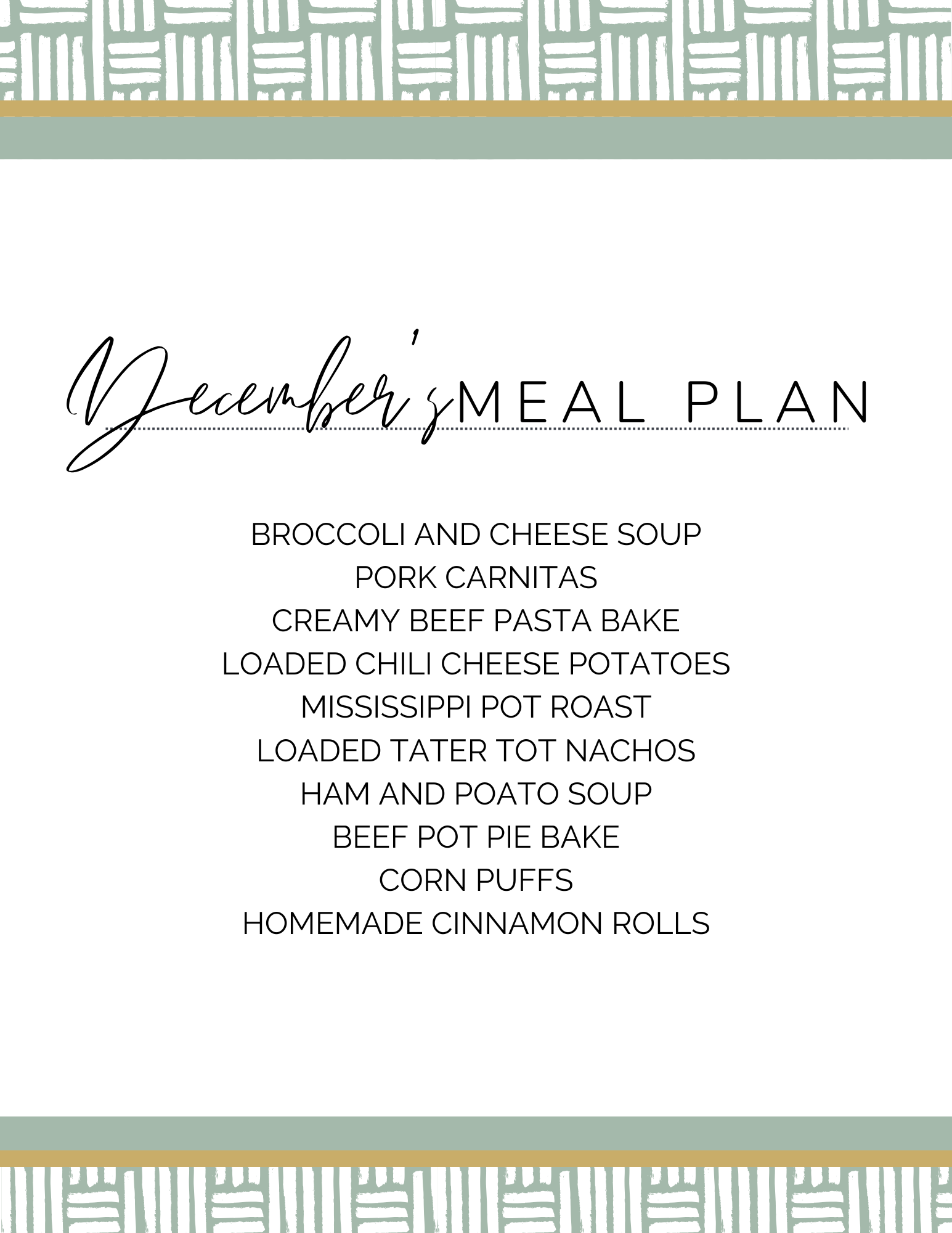 December Meal Plan