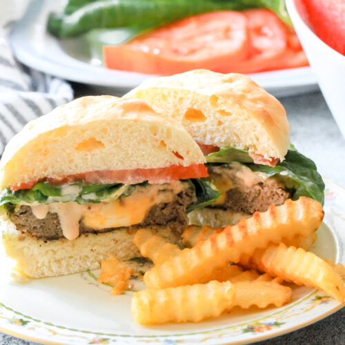 - Hamburger Buns – If you have time, you can make my homemade hamburger buns which will absolutely knock these burgers out of the park!