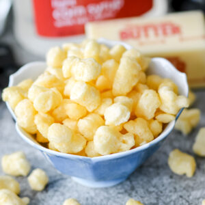 2 cups butter (4 sticks) 2 ¾ cups sugar ¾ cup water 2 tbsp corn syrup 1 (15 oz) bag corn puffs