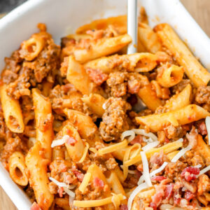 Keyword Bacon pasta recipe, cheeseburger pasta, Cheesy pasta recipes, comfort food recipes, dinner, Easy cheesy pasta, easy dinner, easy weeknight dinners, family-friendly dinner ideas, Gluten-free bacon cheeseburger pasta, Gluten-free dinner ideas, Gluten-free pasta recipes, ground beef, pasta, Quick gluten-free meals, under 30 minutes
